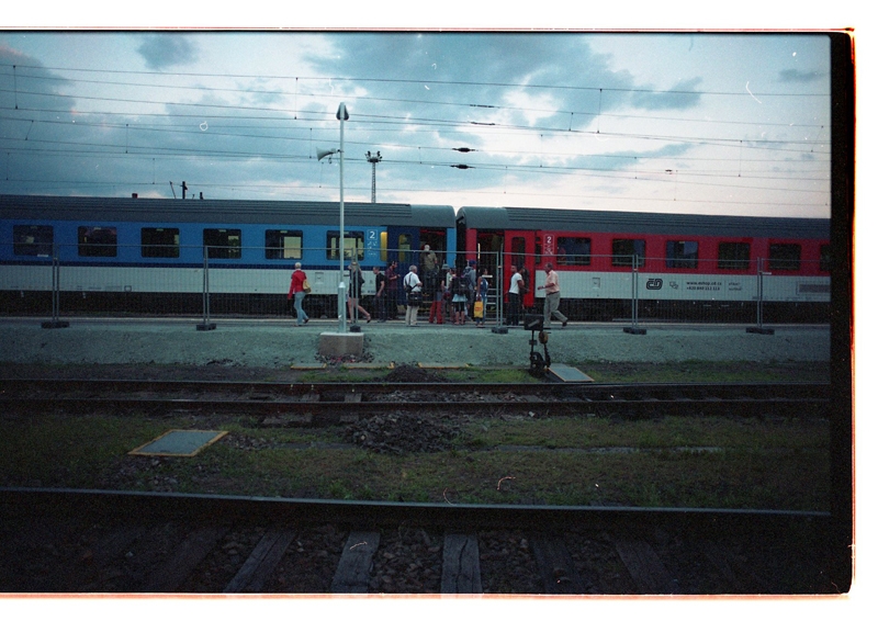 Tak máme pracovnu. Přímo na nádraží. Když otevřeme okna, můžeme pozorovat projíždějící vlaky, mávat lidem, kteří jedou do Prahy, Pardubic nebo Berlína. Noční skřípění, hlášení a svítící tagy na zrezivělých vagonech, samota na konci světa v centru města. Dříve tu přespávali nádražáci, na dveřích ještě čteme nápisy nocležna 1, 2, 3. V jednu hodinu ráno svítí na chodbě z 50.let slabá zářivka a obrovské hodiny odpočítávají nahlas každou minutu. Nálada jako z nemocnice nebo trochu jako z filmu Spalovač mrtvol. Před budovou zarostla nádražní zahrádka. Ze záplavy květů trav svítí ještě rudé růže. Kam se ztratily betonové nádoby na kovových nožkách, které vypadají jako UFO? Kam zmizel malý Karlštejn? V oknech už nekvetou petúnie, ani muškáty, ani verbeny, nikdo nepěstuje cinie, jiřiny, mečíky, astry ani rajčata. Kvůli novému dočasnému nástupišti pokáceli meruňku. Všechno rychle mizí. A to je škoda.